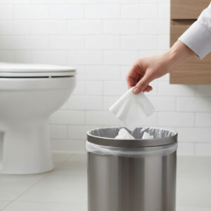 Despite the name, “flushable” wipes don’t break down as easily as toilet paper. They can accumulate in your pipes and cause severe blockages that require professional help to clear. It’s best to dispose of them in the trash.